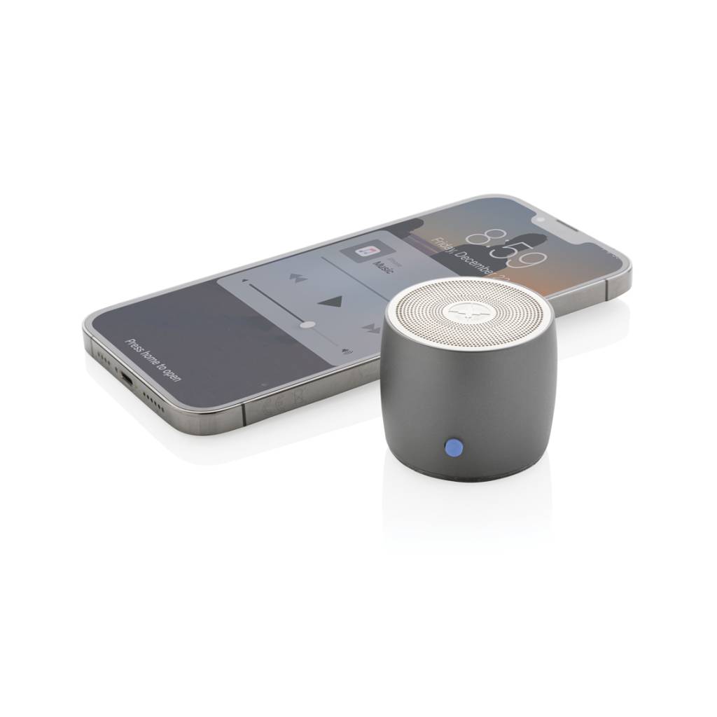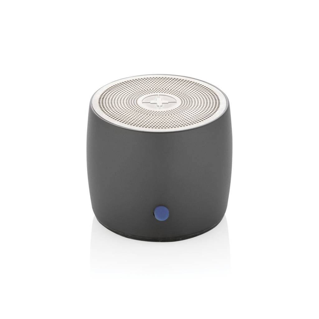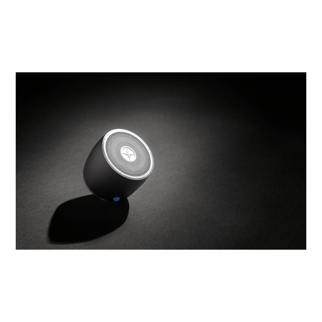 Mali, ali snažni bežični zvučnik od 3 W izrađen od recikliranog aluminija s certifikatom RCS (Recycled Claim Standard) i recikliranog ABS-a. Ukupni reciklirani sadržaj: 28% na temelju ukupne težine predmeta. RCS certifikat osigurava potpuno certificirani opskrbni lanac recikliranih materijala. Aluminij ne gubi svoje karakteristike u procesu recikliranja i može se neograničeno reciklirati. Uključujući reciklirani kabel za punjenje tipa C izrađen od recikliranog TPE s certifikatom RCS. Pakirano u FSC® mix ambalažu. Baterija od 500 mah omogućuje reprodukciju do 4 sata i može se u potpunosti napuniti za 2 sata. S BT 5.0 za glatku vezu do 10 metara. Predmeti i pribor bez PVC-a.