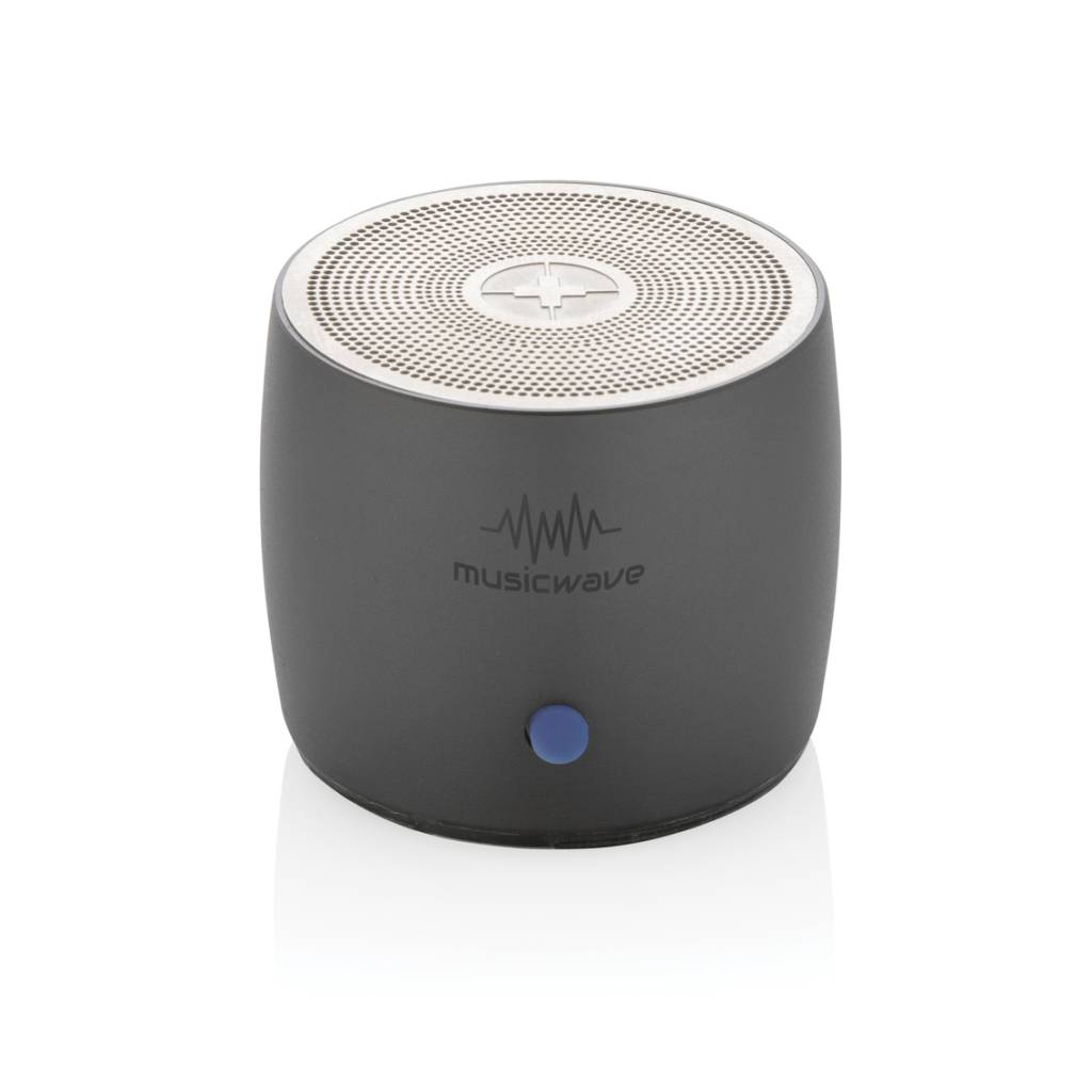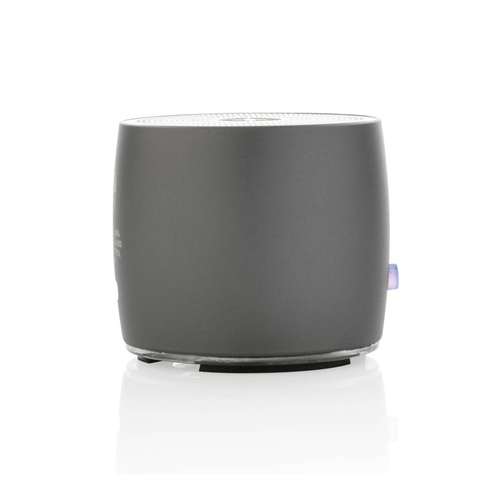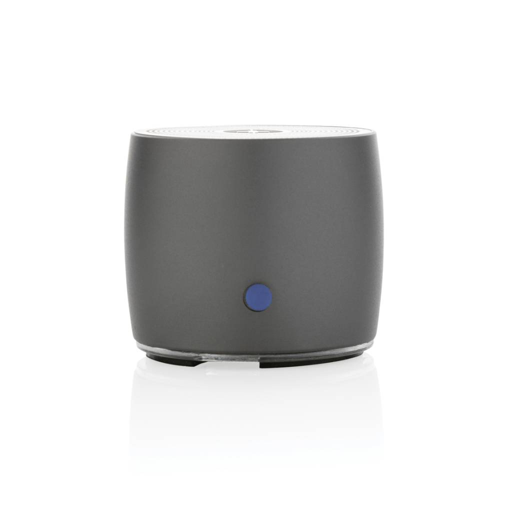 Mali, ali snažni bežični zvučnik od 3 W izrađen od recikliranog aluminija s certifikatom RCS (Recycled Claim Standard) i recikliranog ABS-a. Ukupni reciklirani sadržaj: 28% na temelju ukupne težine predmeta. RCS certifikat osigurava potpuno certificirani opskrbni lanac recikliranih materijala. Aluminij ne gubi svoje karakteristike u procesu recikliranja i može se neograničeno reciklirati. Uključujući reciklirani kabel za punjenje tipa C izrađen od recikliranog TPE s certifikatom RCS. Pakirano u FSC® mix ambalažu. Baterija od 500 mah omogućuje reprodukciju do 4 sata i može se u potpunosti napuniti za 2 sata. S BT 5.0 za glatku vezu do 10 metara. Predmeti i pribor bez PVC-a.