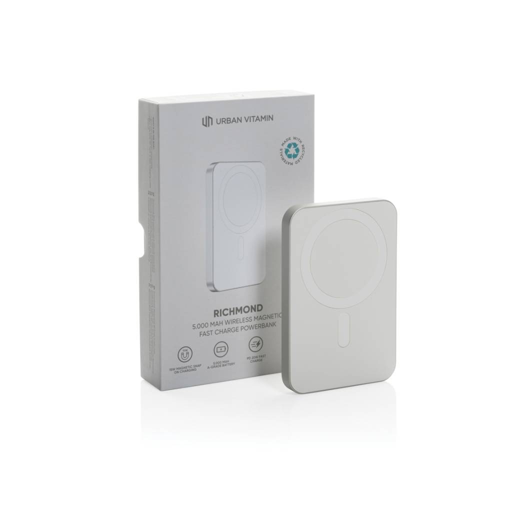 Richmondova magnetska tehnologija bez napora se postavlja na vaš iPhone 12 i novije, kao i na Android telefone nove generacije, osiguravajući besprijekornu vezu za munjevito brzo punjenje od 15 W. Trebate brzi poticaj da prođete kroz dan? Richmond podržava munjevito brzo punjenje od 20 W putem svojeg priključka Type-C, kako za punjenje samog powerbank-a tako i za punjenje vašeg uređaja. Nema više čekanja – vratite se onome što je najvažnije u trenu! Ne može biti jednostavnije – samo kliknite Richmond na svom telefonu i gledajte kako se magija događa! Naš inteligentni dizajn automatski pokreće punjenje čim se spoji, osiguravajući da su vaši uređaji uvijek napunjeni kada ih trebate. Vjerujemo u kvalitetu koja traje, zbog čega je Richmond opremljen visokokvalitetnom kobaltnom baterijom od 5000 mah 100%. Ova snaga traje dulje i radi bolje od običnih litijevih baterija, dajući vam pouzdanu, dugotrajnu snagu. Izrađen od recikliranog aluminija i ABS certificiranog RCS (Recycled Claim Standard).