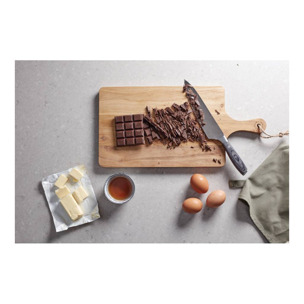 Elegantna daska za rezanje/posluživanje koja će izgledati sjajno u svakoj kuhinji. Prostrana površina olakšava korištenje za rezanje i posluživanje. Ploča je izrađena od tikovine s FSC® certifikatom i ima prekrasnu zlatnu do srednje smeđu drvenu površinu koja s vremenom potamni. Visok sadržaj ulja pruža snažnu zaštitu od truljenja i održava ga u dobrom stanju dugo vremena.