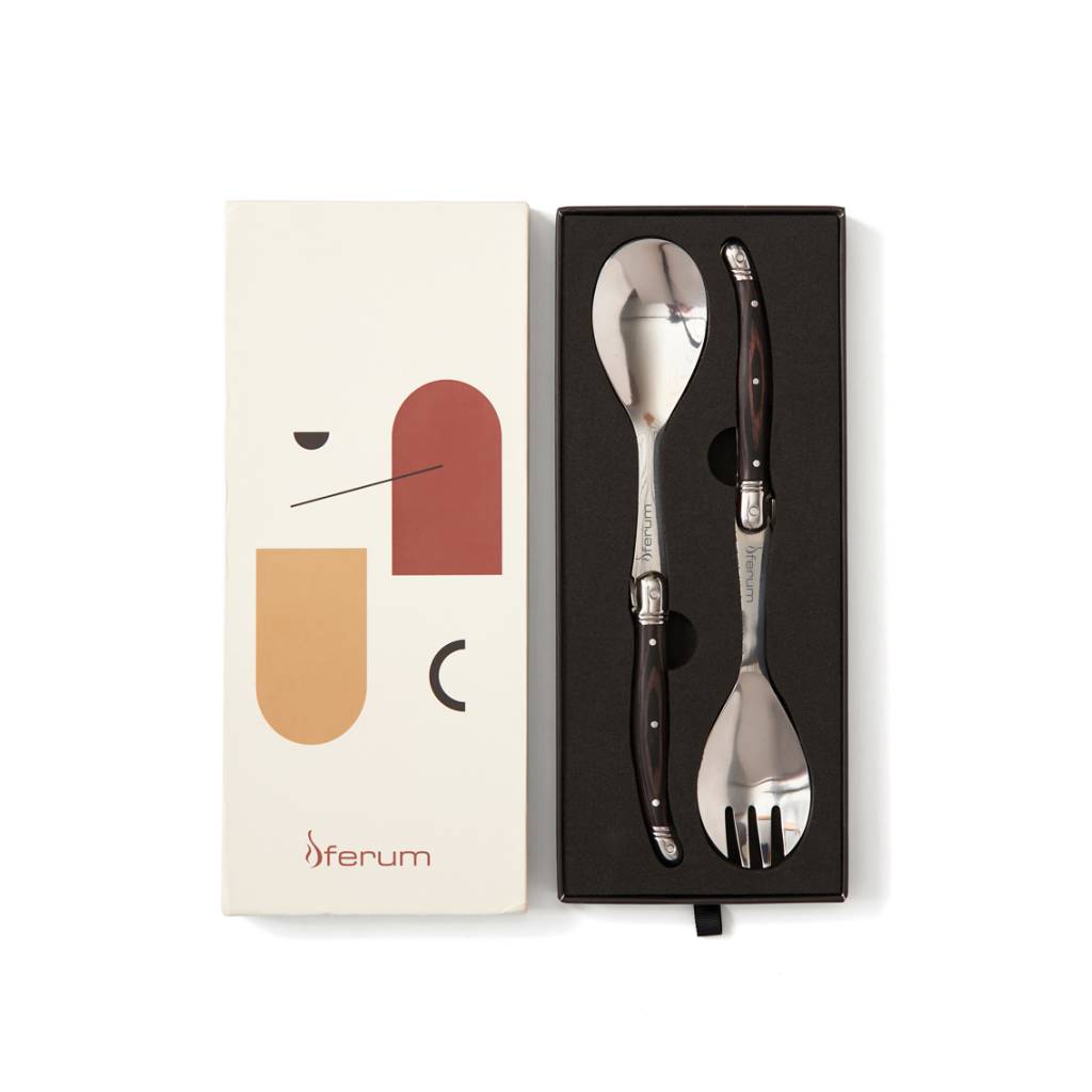 Visokokvalitetni poslužitelji za salatu u stilu tipičnog francuskog bistroa. Drška od crnog pakkawooda i visokokvalitetna oštrica od nehrđajućeg čelika. Pakiran u ekskluzivnoj poklon kutiji.