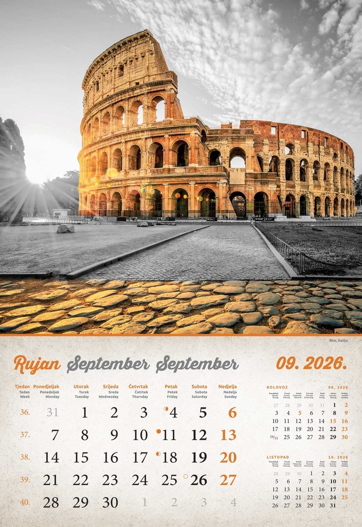 “VINTAGE GRADOVI” 13 list., dim: 33x55cm, PVC vrećica, P/40, kalendar u boji