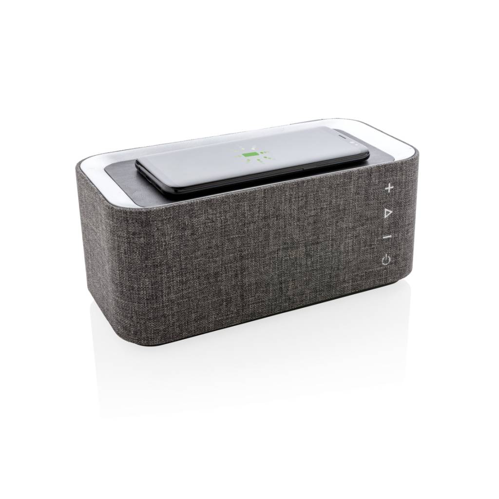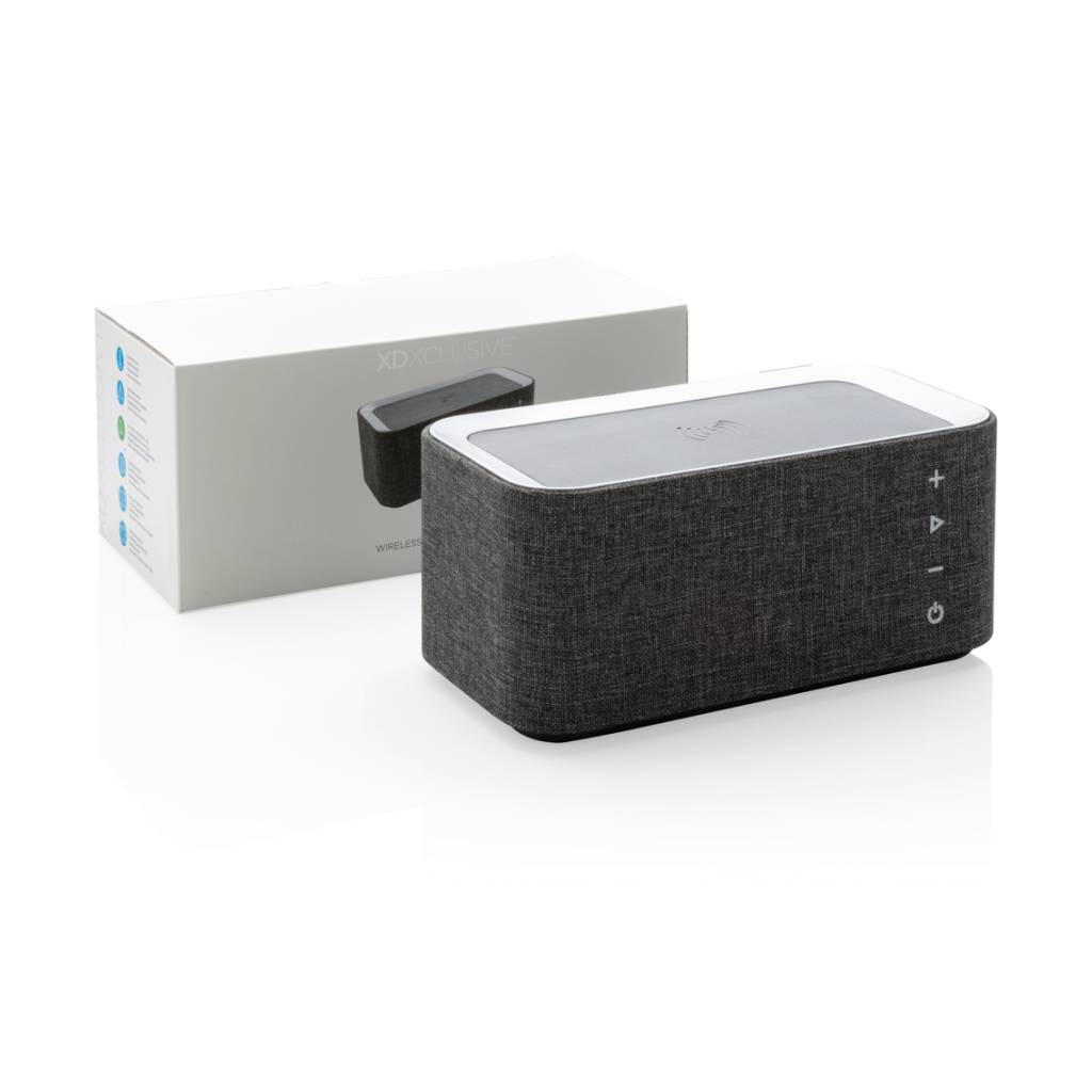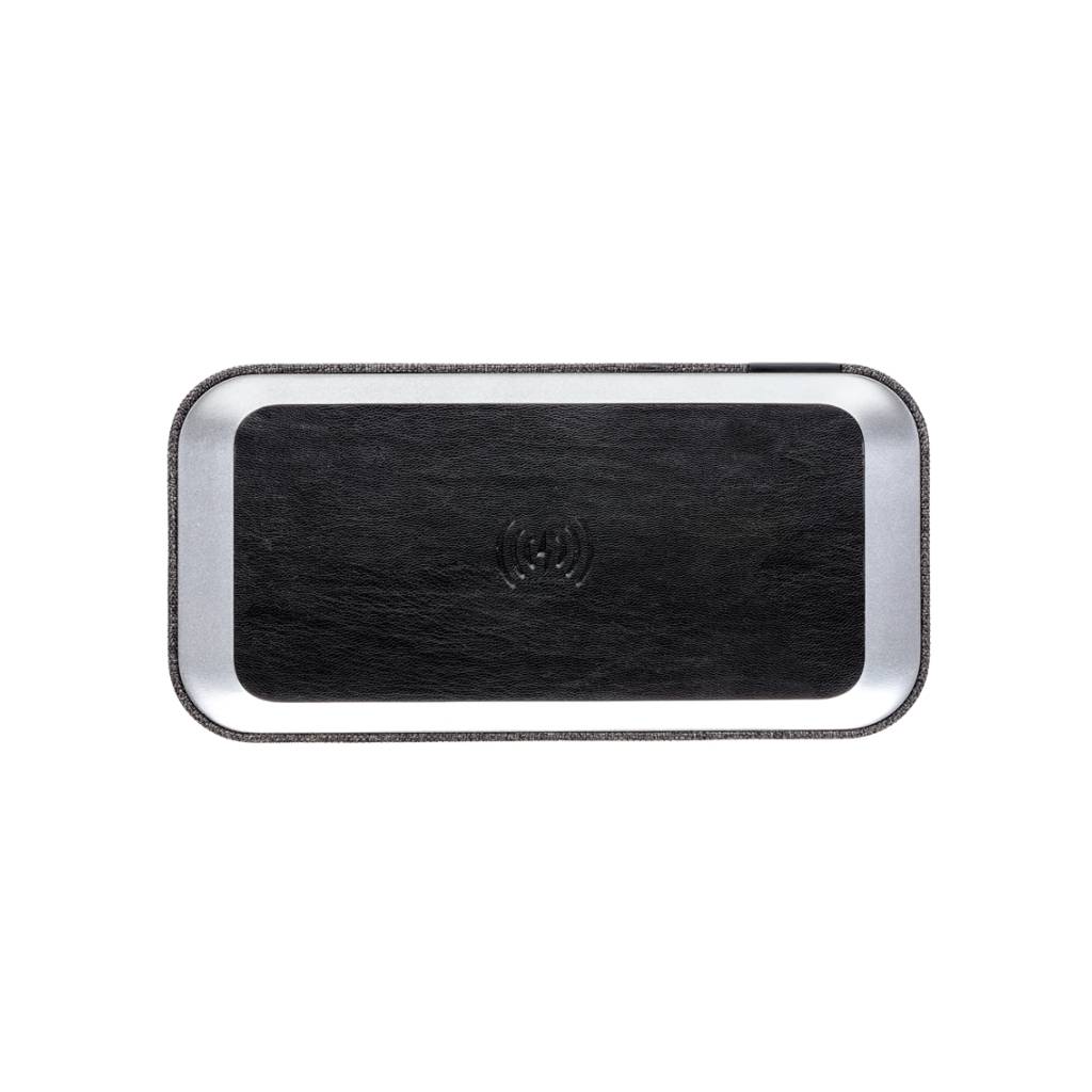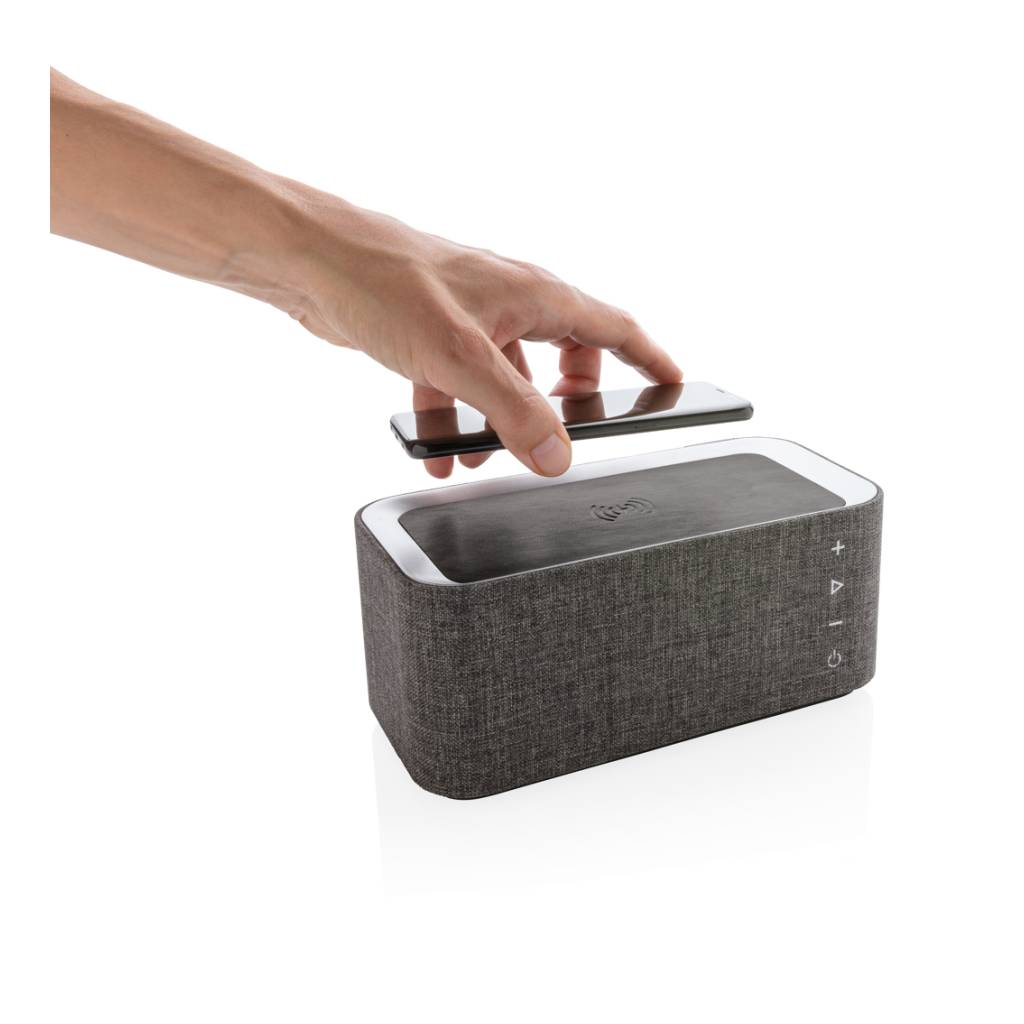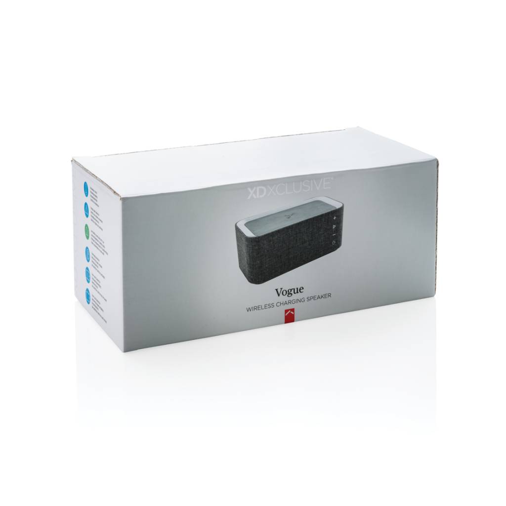 Vogue 6W bežični zvučnik za punjenje kombinira dvije bitne funkcije modernog života: slušanje omiljene glazbe i punjenje mobilnog uređaja bez ikakvih žica. Moderan dizajn tkanine savršen je za vaš stol, kod kuće ili u pokretu. Zvučnik koristi bežični BT 3.0 za glatku vezu i ima radnu udaljenost do 10 metara. S handsfree funkcijom i podizanjem. Baterija od 4.000 mAh omogućuje vam reprodukciju glazbe do 10 sati ili punjenje vašeg mobilnog telefona dvaput (ovisno o veličini baterije vašeg telefona) U slučaju da vaš telefon ne podržava bežično punjenje, također možete koristiti USB priključak na stražnjoj strani za punjenje telefona na tradicionalan način pomoću kabela. Kada koristite obje funkcije, preporuča se držati predmet spojenim na izvor napajanja putem priloženog mikro USB kabela od 150 cm. Ulaz: 5V/1A. Izlaz: 5V/1A. Bežični izlaz: 5V/1A 5W. Registrirani dizajn®